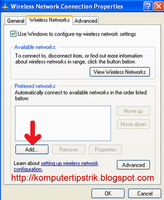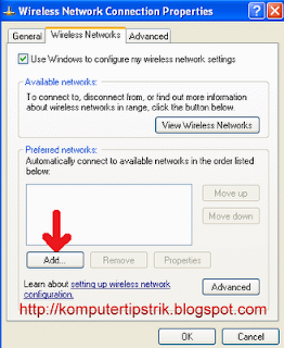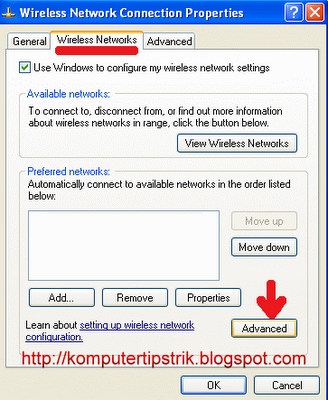 • Pilih Tab Wireless Networks --> klik Advanced