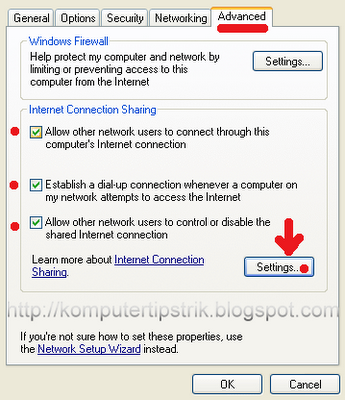 • Pilih Tab Advanced, Contreng Allow other network user to connect through this …,